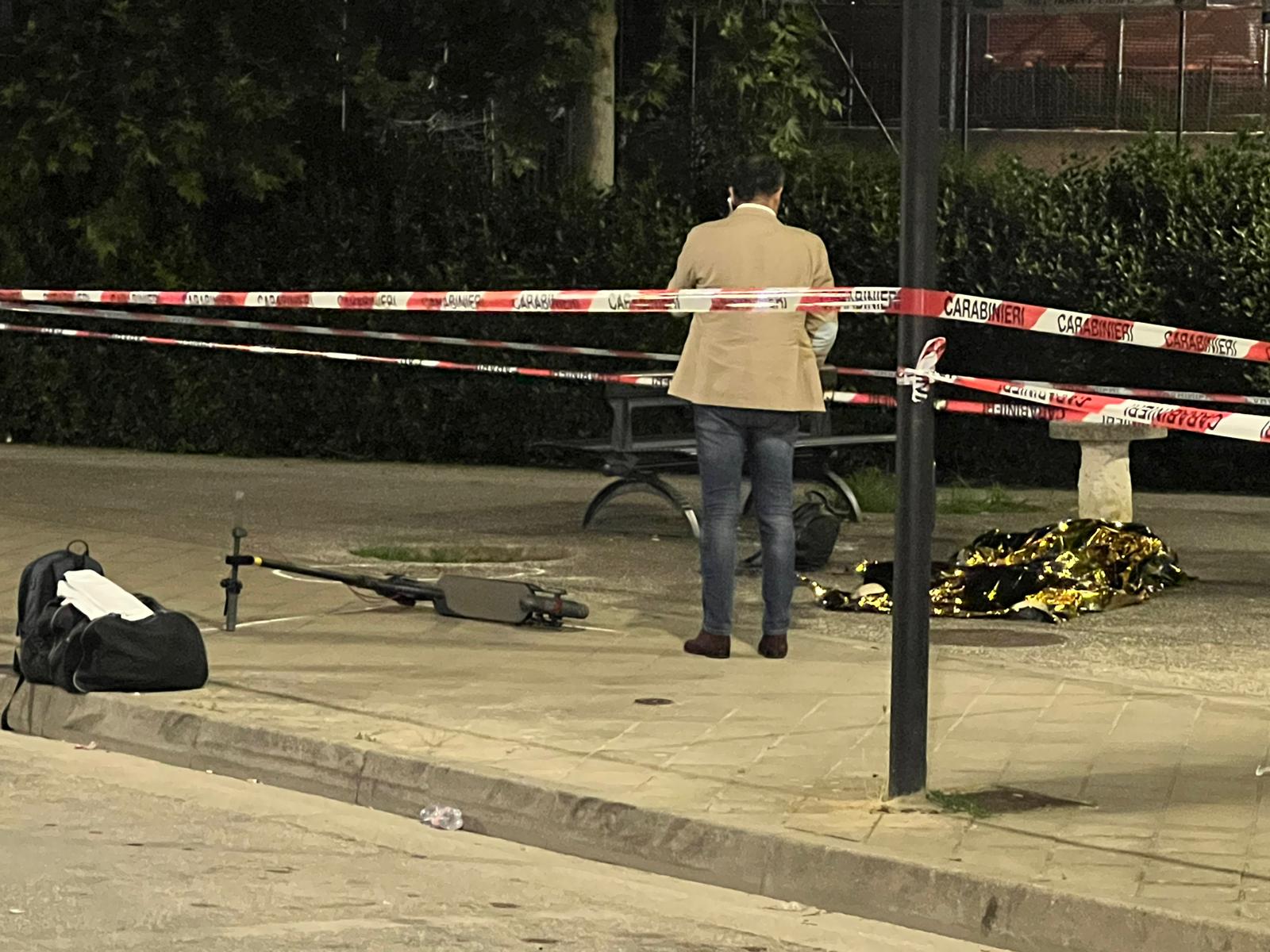 Nella foto di Daniela Gurini, giunta sul posto per Vera TV, il pm Enrico Riccioni di fronte al corpo della donna ancora a terra. Vicino, la panchina dove l'omicida, dopo l'aggressione mortale, si è seduto prima dell'arresto.