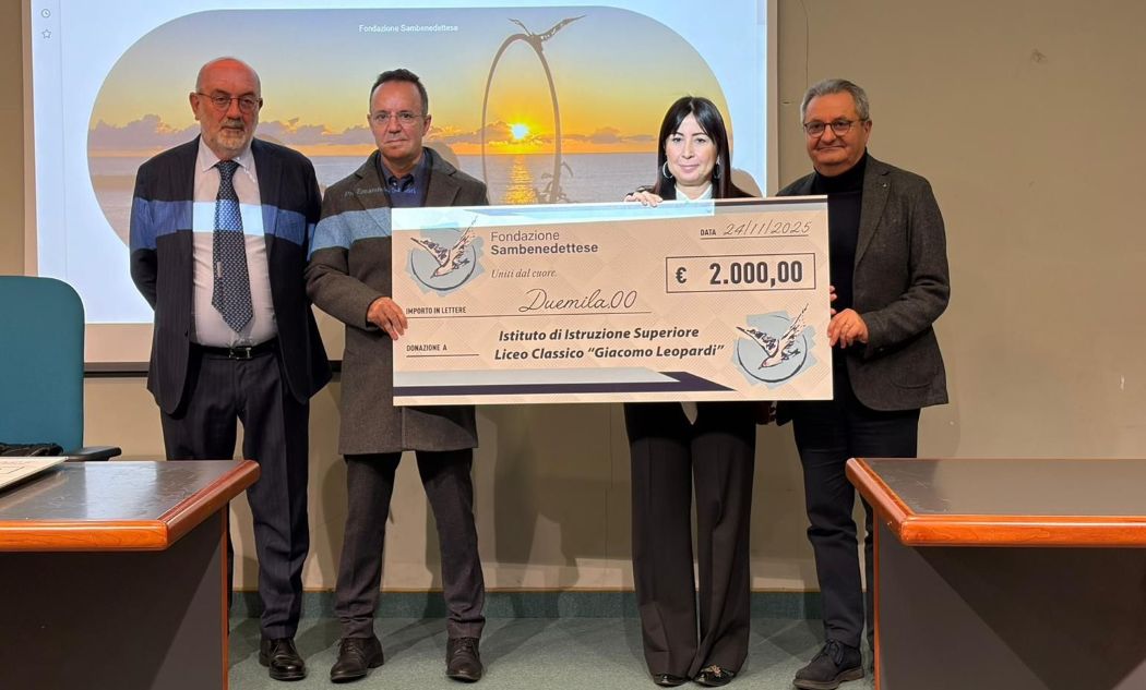 Si è svolta questa mattina, presso l’Auditorium Tebaldini di San Benedetto del Tronto, la cerimonia ufficiale di consegna delle donazioni destinate agli Istituti scolastici superiori locali, iniziativa promossa dalla Fondazione Sambenedettese per sostenere concretamente le esigenze degli studenti e favorire la loro crescita educativa e umana.