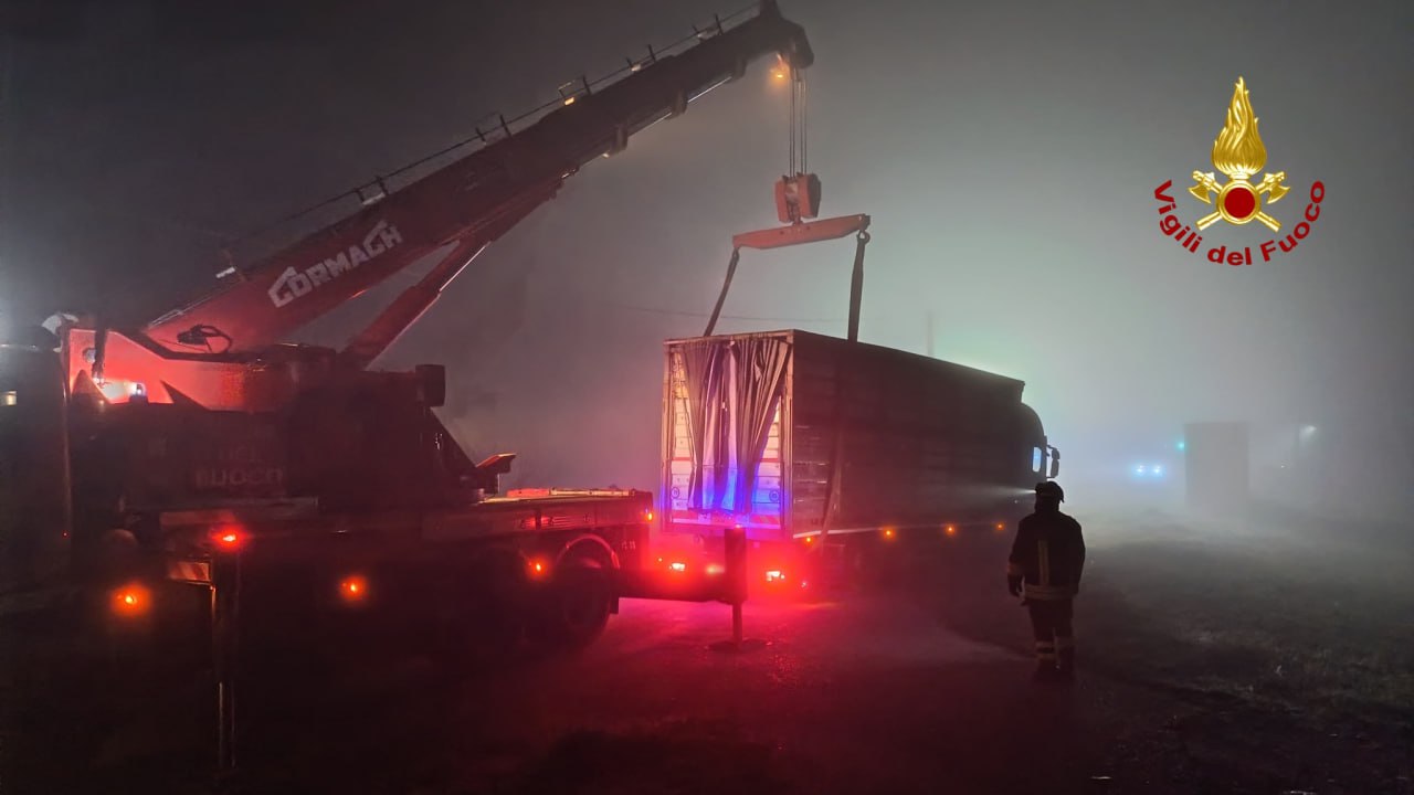Forse a causa della nebbia calata la scorsa notte, poco prima delle ore 1.30, in contrada Castello Tennacola ad Amandola un autocarro adibito al trasporto di animali vivi, è uscito dalla carreggiata ed è rimasto bloccato nella cunetta a lato della strada.