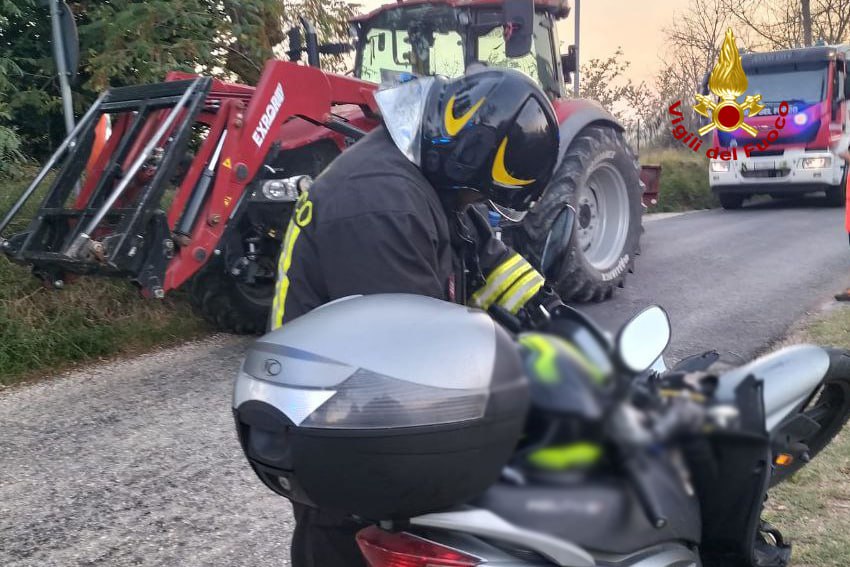 Un grave incidente stradale è avvenuto alle ore 18 a Fermo: coinvolti un mezzo agricolo e una motocicletta. Ad avere la peggio il centauro finito sotto al trattore dopo essere scivolato sull’asfalto.