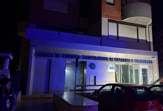 PORTO POTENZA - Un boato alle 3:30 circa di oggi e poi la fuga. Hanno fatto esplodere il bancomat della Bcc di Viale Regina Margherita e poi si sono dati alla fuga tre malviventi incappucciati. Il vicinato è stato svegliato dalla forte deflagrazione e subito sul posto sono intervenuti i carabinieri che hanno avviato le indagini. Ancora da quantificare l’entità del bottino, al vaglio le telecamere di videosorveglianza. Alcuni testimoni hanno visto tre uomini incappucciati darsi alla fuga a bordo di un’auto di colore chiaro direzione Civitanova