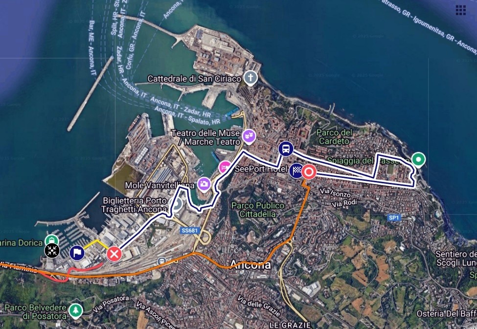 I tedofori, circa 30, arriveranno a Marina Dorica intorno alle ore 16:00 e ripartiranno alle ore 17:52. Il percorso verso piazza Cavour prevede l’uscita da Marina Dorica quindi gli atleti percorreranno in controviale via Mattei per poi giungere in via Marconi, rotatoria san Martino, via XXIX Settembre, svolta a destra in Piazza Kennedy; quindi risaliranno corso Stamira, arriveranno in via Marsala e poi raggiungeranno corso Matteotti per poi proseguire per corso Amendola fino all’intersezione con via Rismondo, poi svolteranno a sinistra fino a via Montegrappa e successivamente arriveranno in via Panoramica per poi scendere toccando piazza IV Novembre. Infine percorreranno il Viale della Vittoria giungendo in piazza Cavour. Le vie interessate saranno interdette momentaneamente al passaggio dei tedofori e immediatamente riaperte a transito avvenuto.